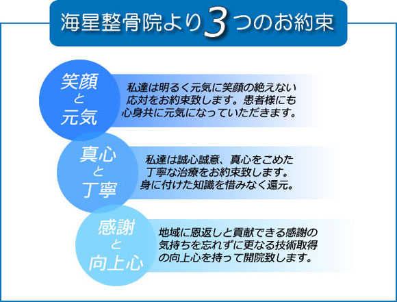 海星整骨院は福岡市西区福重2丁目に開院しています。お身体の不調や痛みがございましたらお気軽にご来院ください。正面に無料駐車場完備